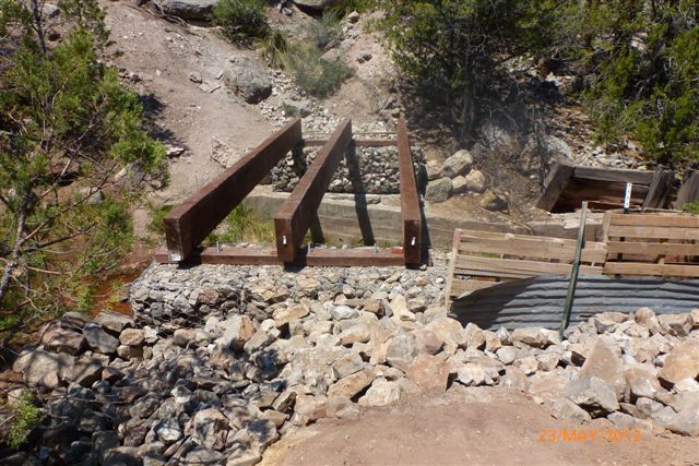 May 23, 2012 by New Mexico Rails-to-Trails Association Water Crossing Has A Top A special workday was held today (Wednesday, May 23). The timbers were placed across the creek on top of the gabions. Share this: Click to share on Facebook (Opens in new window) Facebook Click to share on X (Opens in new window) X Click to email a link to a friend (Opens in new window) Email Like Loading... Related