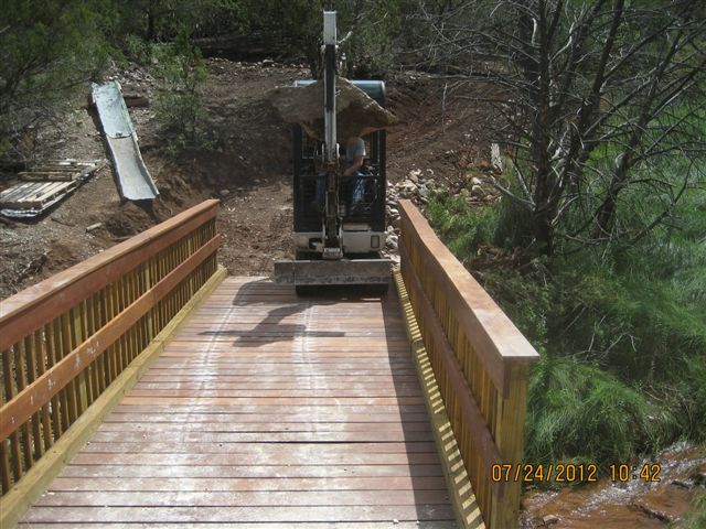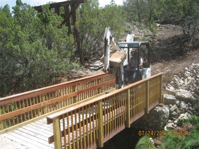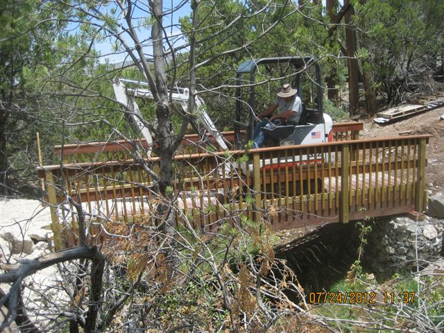 It’s safe to use the trail from Fresnal Canyon Road (Across the road from the lower Grand View Trailhead) to Bridal Veil Falls, now. The crossing is finished! Congratulations to all our hardy volunteers. It’s a work of art!