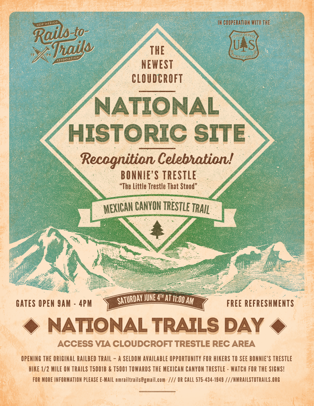Come on out on NATIONAL TRAILS DAY, Saturday, June 4th, at 11:00am to help us celebrate Cloudcroft’s newest NATIONAL HISTORIC SITE!!!