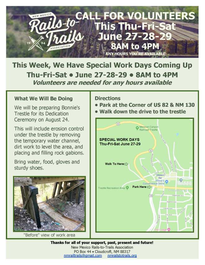 Special Workdays at Bonnie’s Trestle Share this: Click to share on Facebook (Opens in new window) Facebook Click to share on X (Opens in new window) X Click to email a link to a friend (Opens in new window) Email Like Loading...