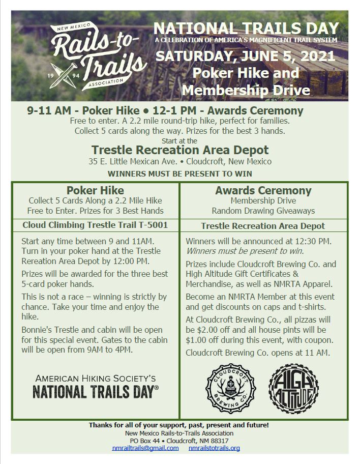 National Trails Day Poker Hike – June 5 Share this: Click to share on Facebook (Opens in new window) Facebook Click to share on X (Opens in new window) X Click to email a link to a friend (Opens in new window) Email Like Loading...